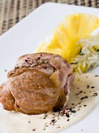 - Immerger le rôti dans une grosse casserole en fonte ou cocotte dans laquelle on à versé le lait de noix de coco, napper le dessus du rôti, allumer le feu (très doux) et couvrir.